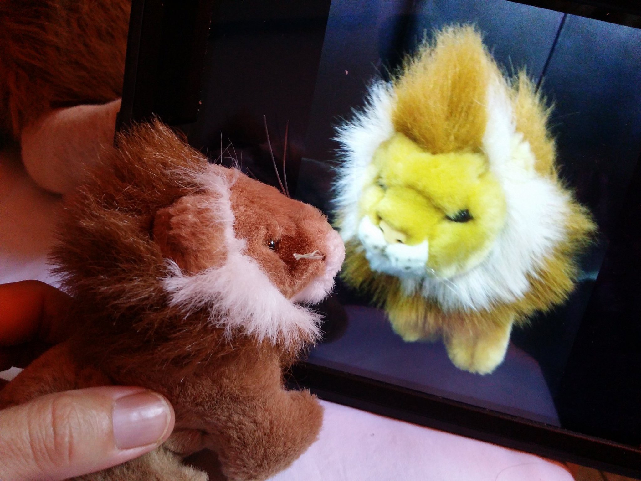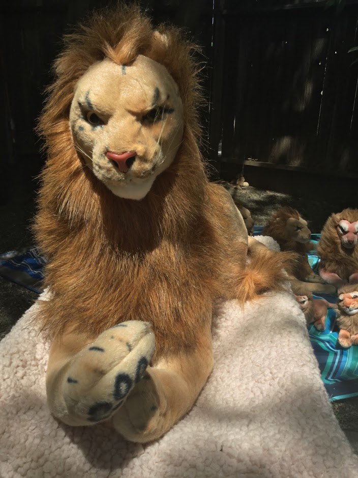 Regarding the visual lion updates, I had left off with the treasurer Rob Treasure Lion. Since then, two more lions have been added to the Inner Crew. Rob Traveler Lion has an irresistible “Who, me?” look in his eyes, saying, “Madam, why are you looking at me like that?” before devotedly falling into my arms. Rob Fierce has a striking fiery glow in one of his eyes.