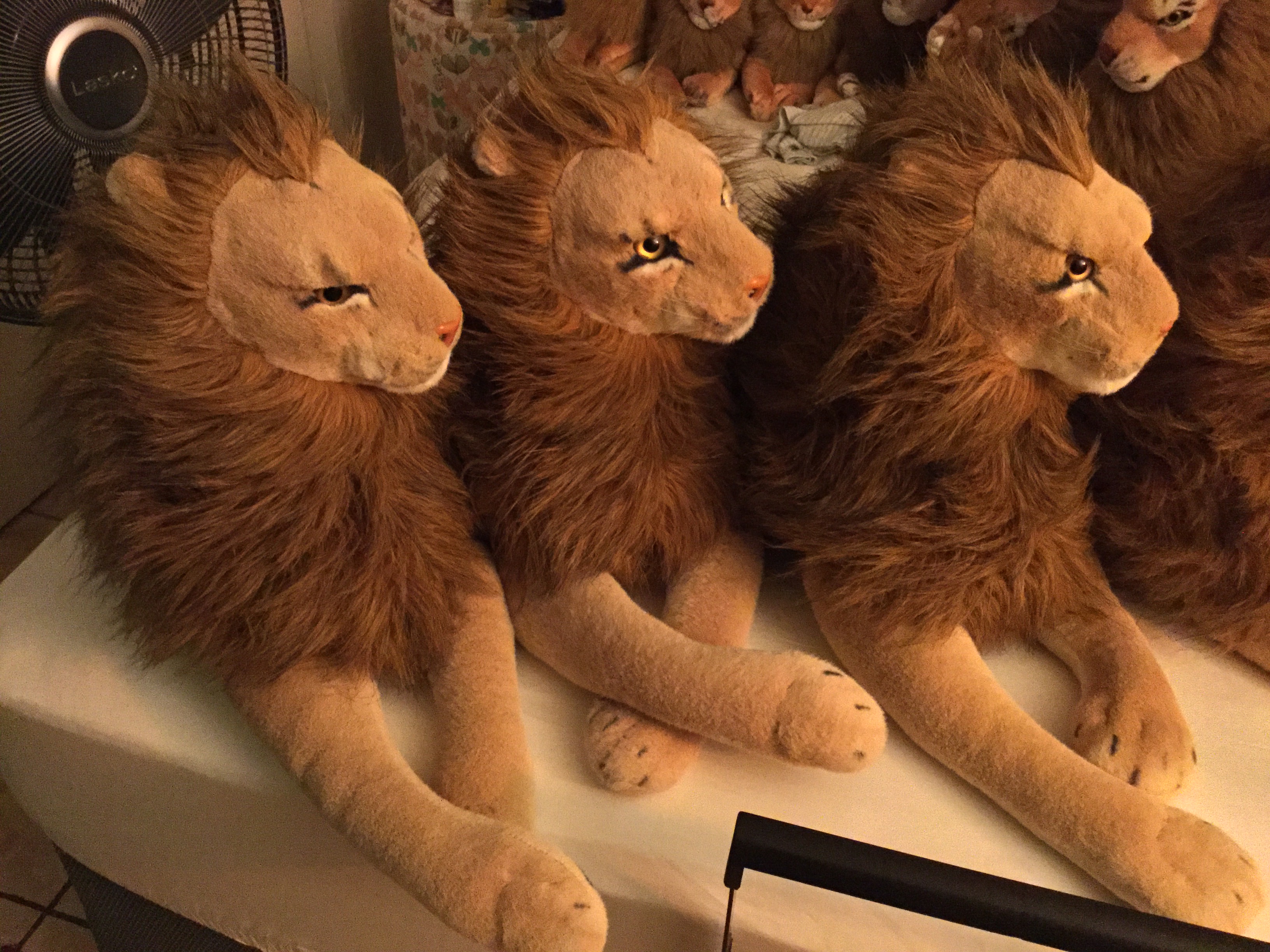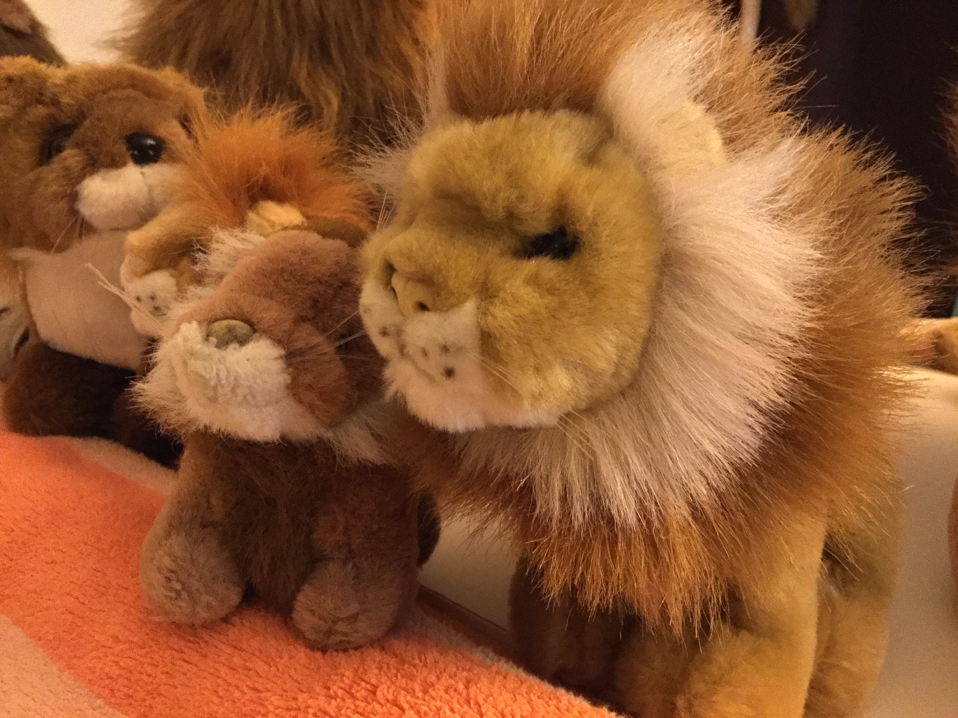 For the new, increasingly difficult to find, Rob inner crew lion, I had to go to Ali Express, which still has a seller who sells them. I eagerly awaited the shipment directly from China, and one day, unsuspectingly, I looked in my mailbasket and saw a compact round ball wrapped in plastic. Confused, I thought, “Huh, did I order clothes? I don’t remember.” The next moment, it dawned on me with a shock: “Could it be the lion?” With a cry of horror about its shipping fate, I let the lion come into the world by carefully cutting open the intensely tight plastic with scissors. Like the previous lions, he emerged from plastic, and the analogy with childbirth was always apt. Despite being somewhat crumpled, he came out miraculously with minimal damage. I brushed him, did everything to make him beautiful again, and succeeded! He is extremely soft, with probing eyes and a filled neck and back, pleasantly solid, and fits perfectly in my embrace. To be continued.