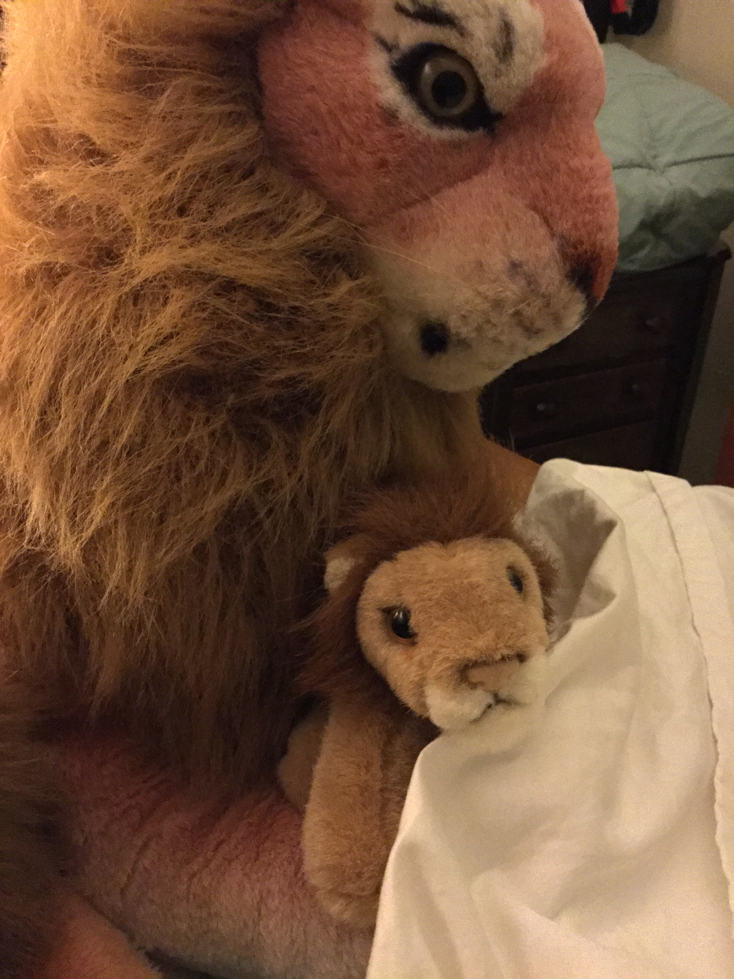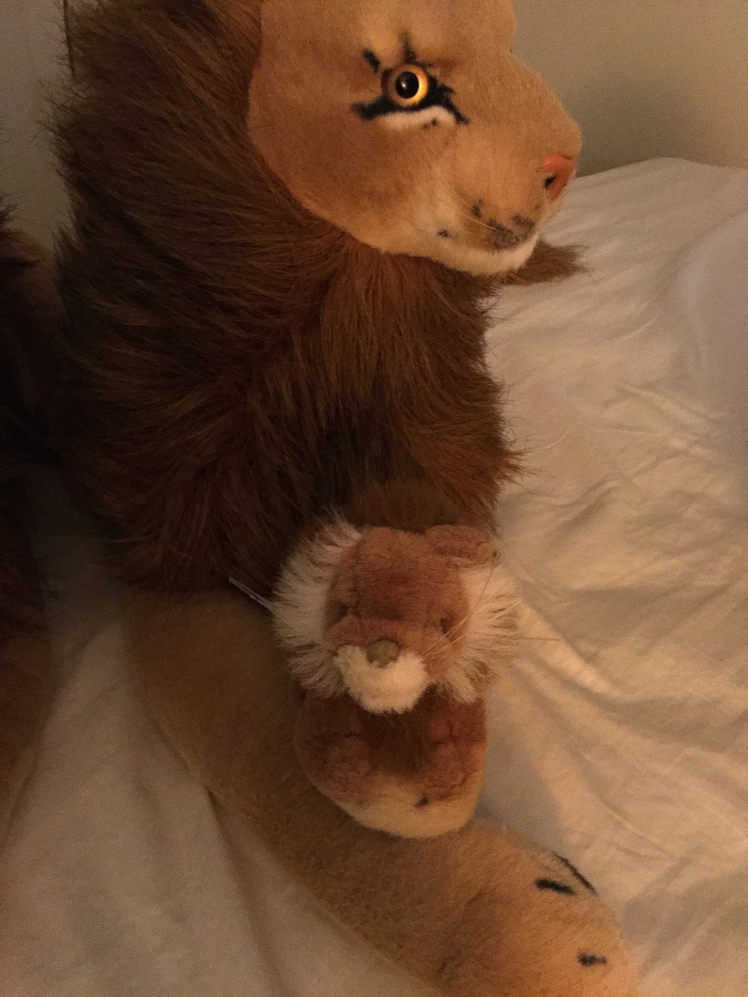 When I sometimes lost sight of my plush lion as a kid, I called for him (keep in mind, I was just a little kid): “Lion, where are you?” Lion used to be hiding under my bed, or in the corner of my bed, hiding under a pile of sheets or blankets. He never was lost, really, I always found him again. How adrift I felt without him. Like when I lost my plush bunny. Sometimes I even wrote small notes saying: “Where are you, Lion?” and left them on my bed, hoping Lion would see it and come back. He always did.