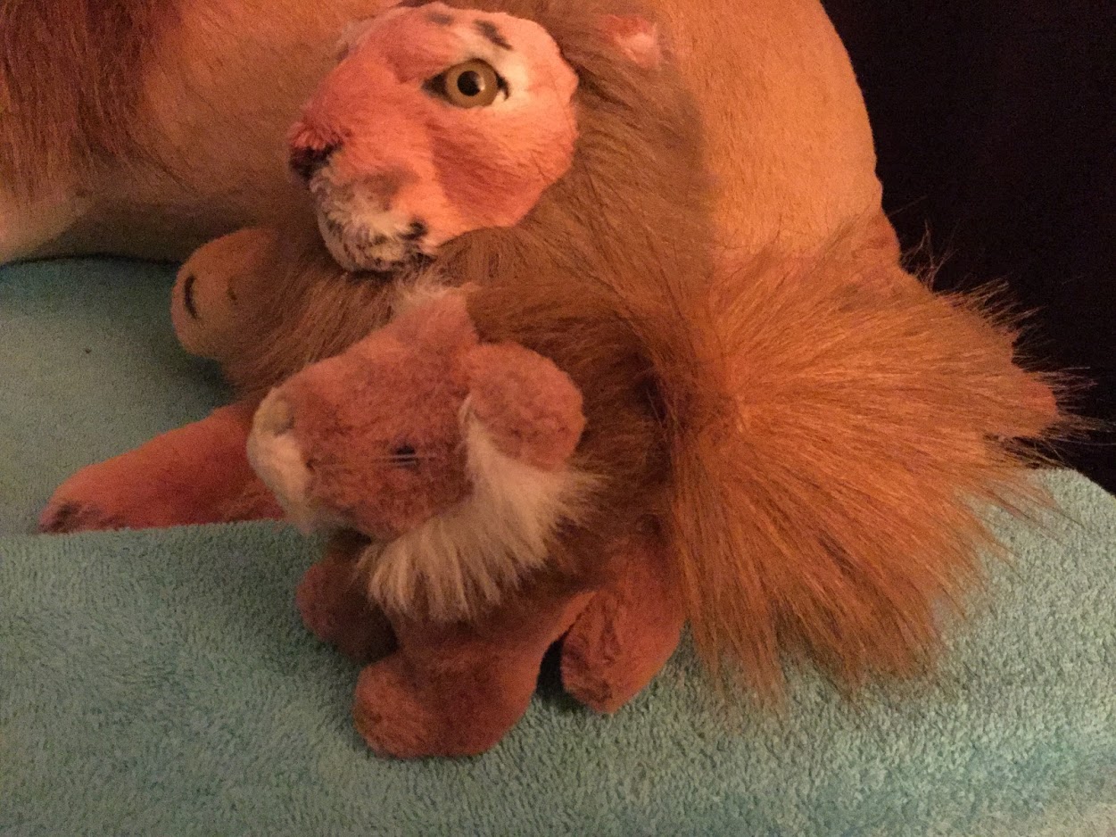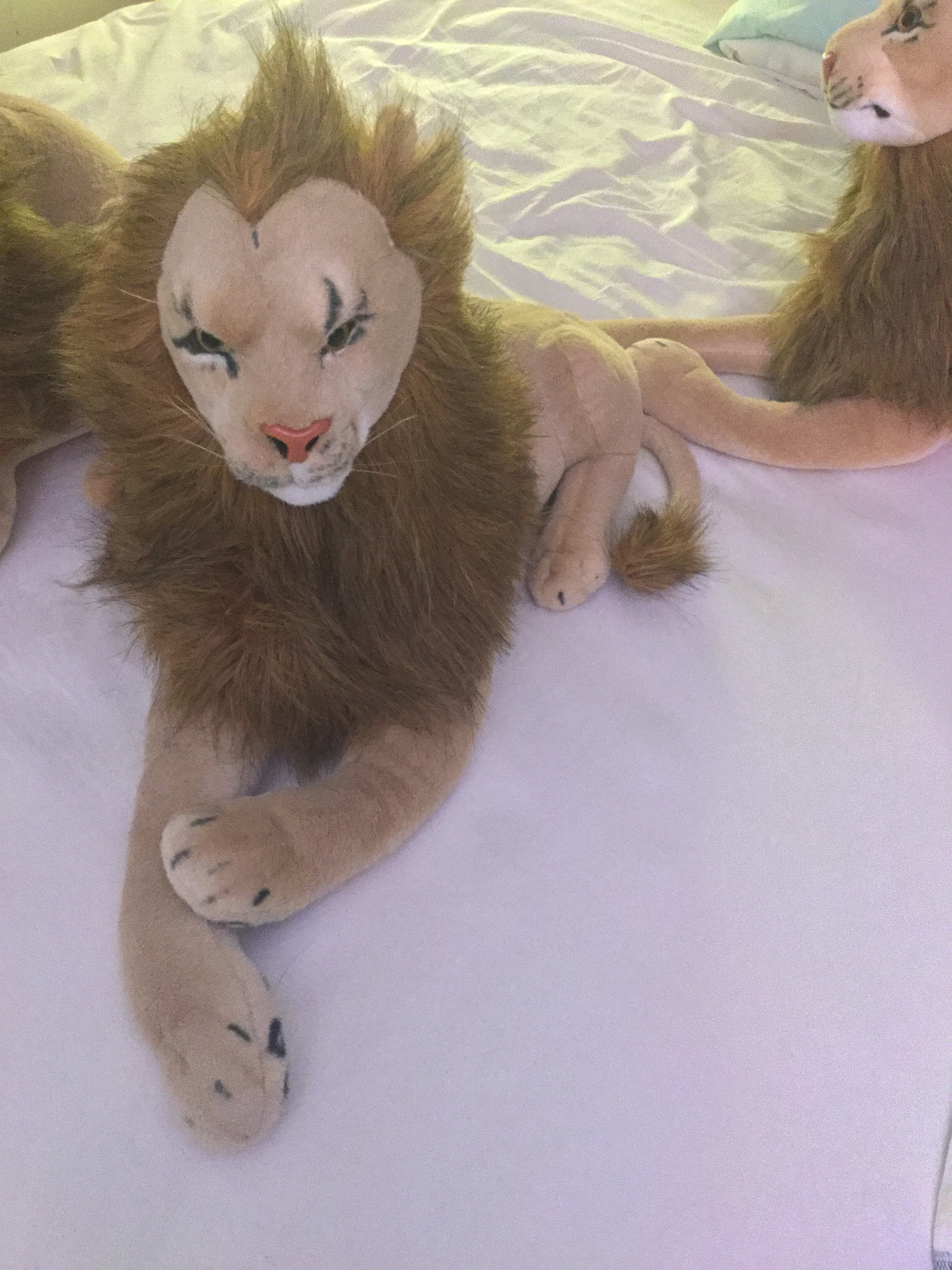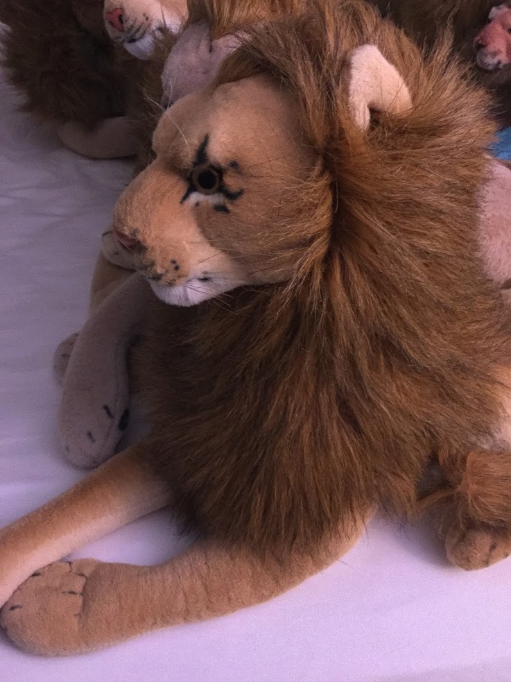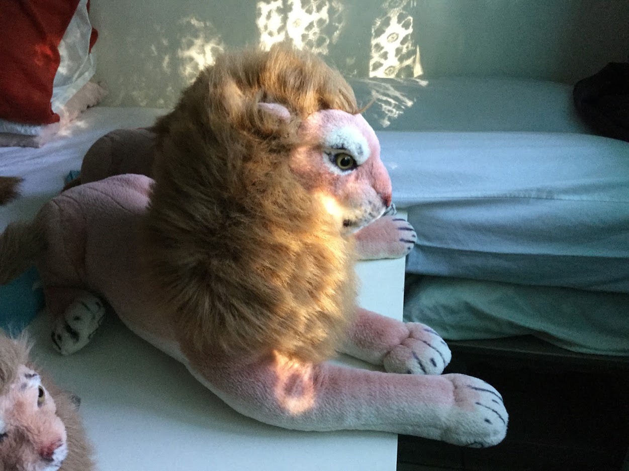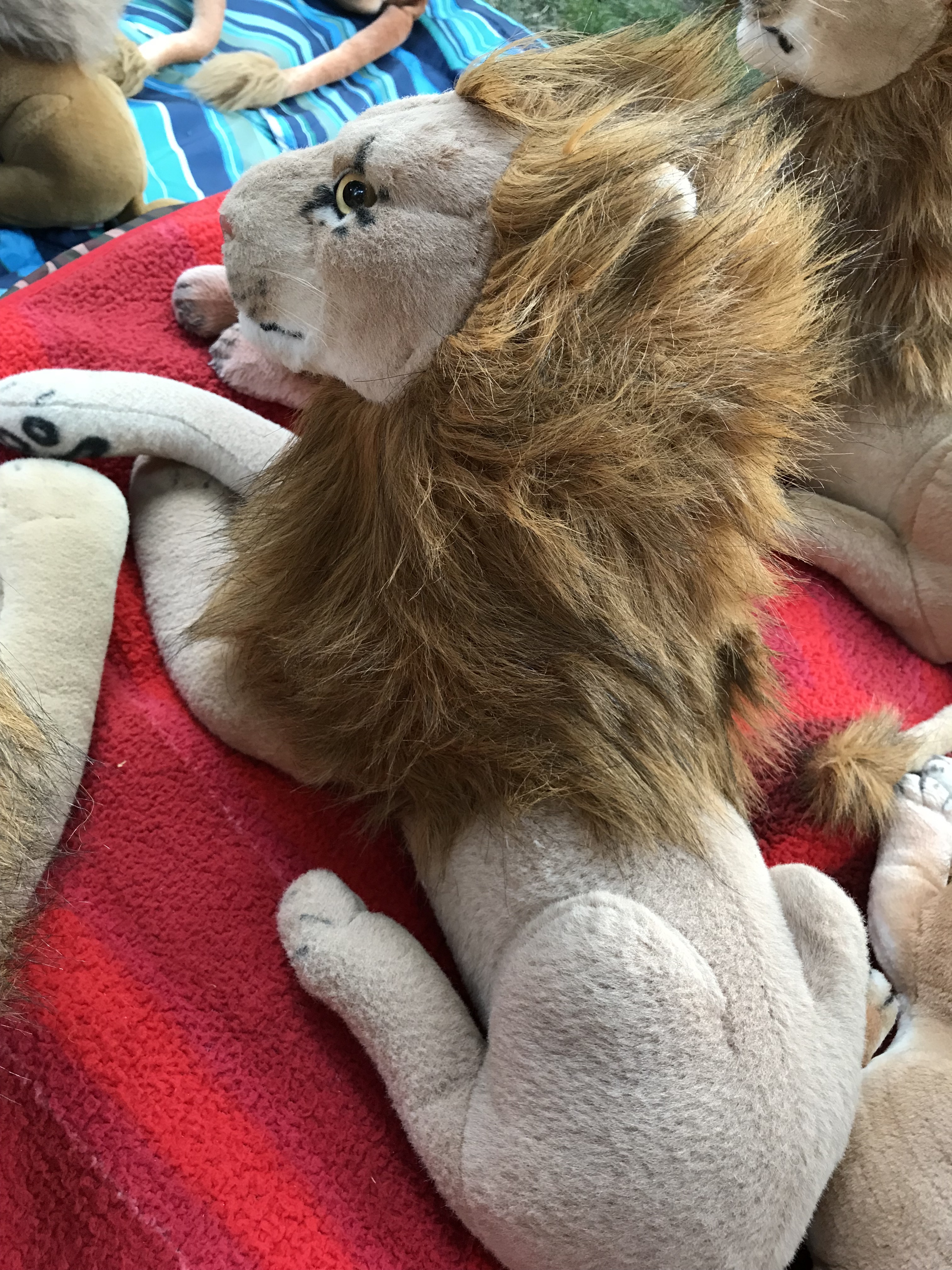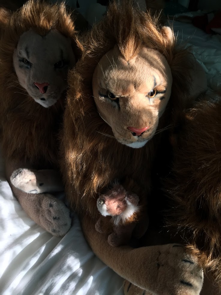 And time and time again, when I was at my wit’s end, the flame beneath my earthly despair and loneliness began to flicker, encouragements came, and still come: “Hang in there!” Let me give a few examples. I’m completely in love with the new inner crew Rob Nanninga lion “Surprise” with his beautiful soft mane, his attentive and lightly ironic, heavenly eyes. I’m head over heels for all the inner crew Rob lions, and the infatuation strikes again and again. And last March, my mind made a beautiful connection: the lion had literally arrived like a ball, and another word for ball is “Orb.” That word is itself a skeptical wink because “orbs” in photos are often seen by paranormal believers as spirits or energies. Suddenly, the word Rob rolled over to Orb, and then I immediately had a new name tag made for Rob Surprise Lion. My mind then continues to play with the name of the new Rob lion: Surprise Orb, Supreme Orb, Sublime Orb, Superb Orb, Super Orb, Stunning Orb…