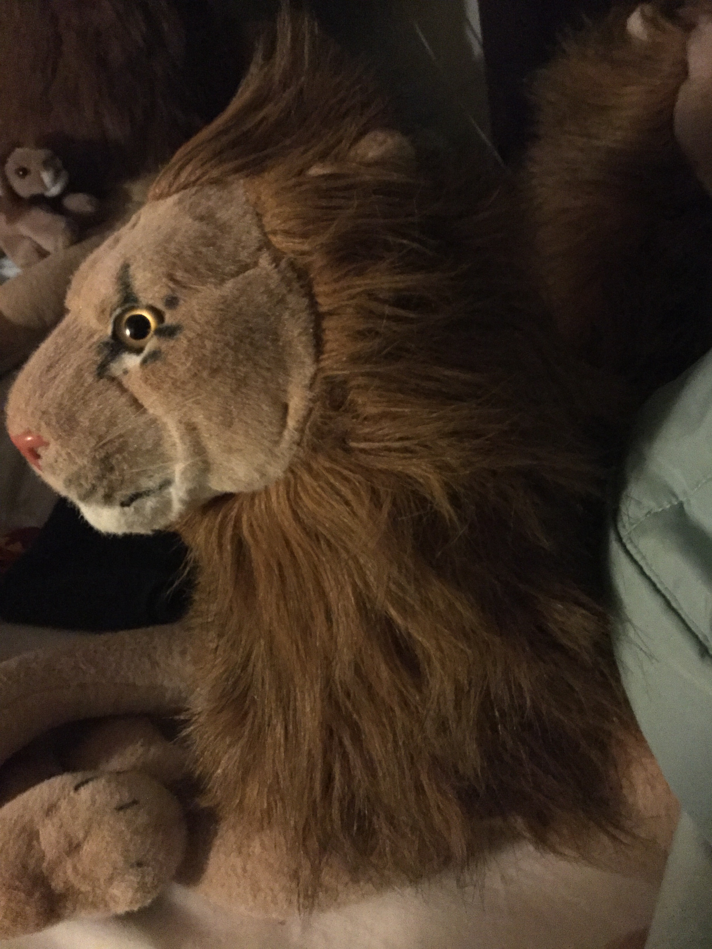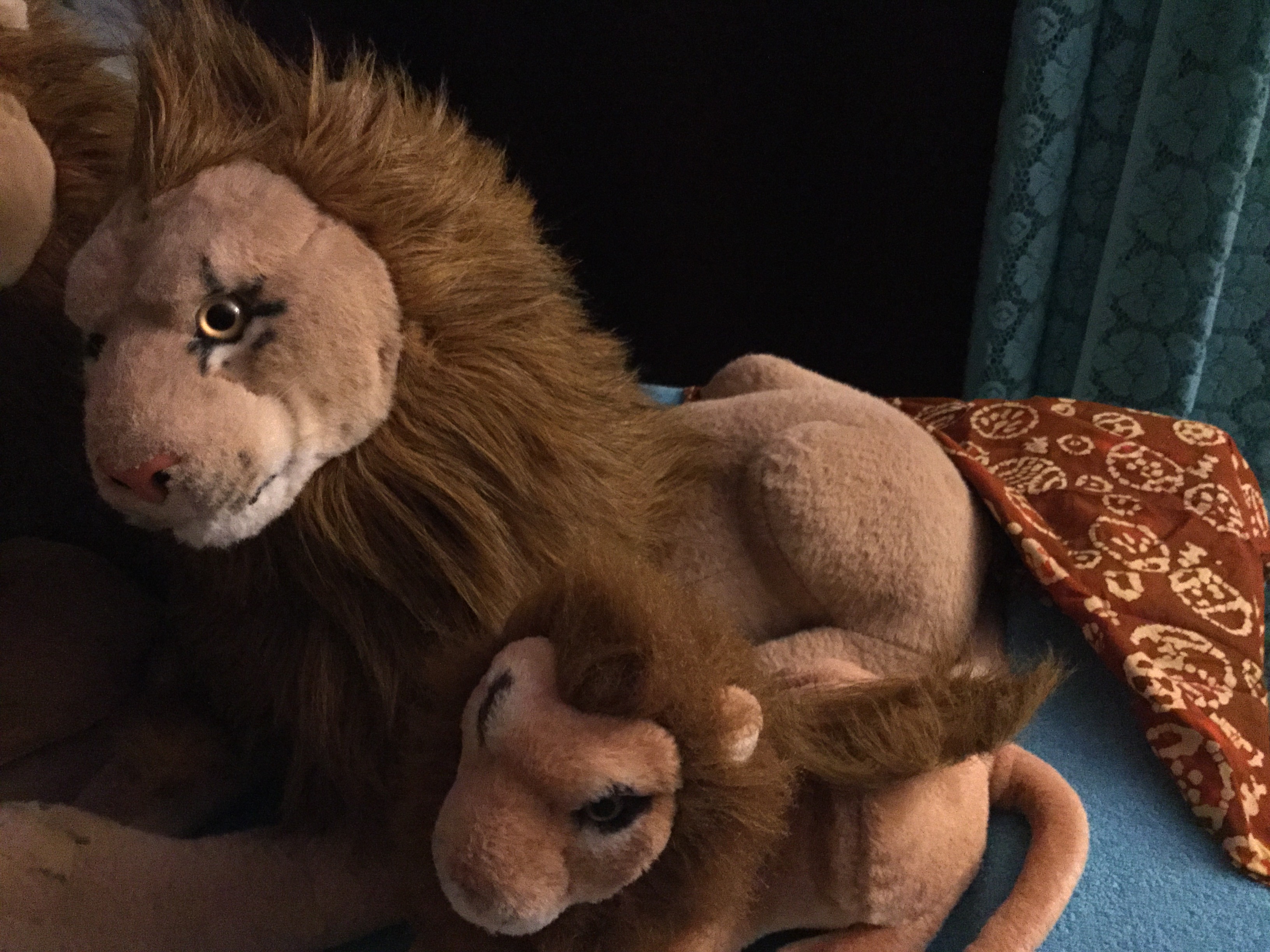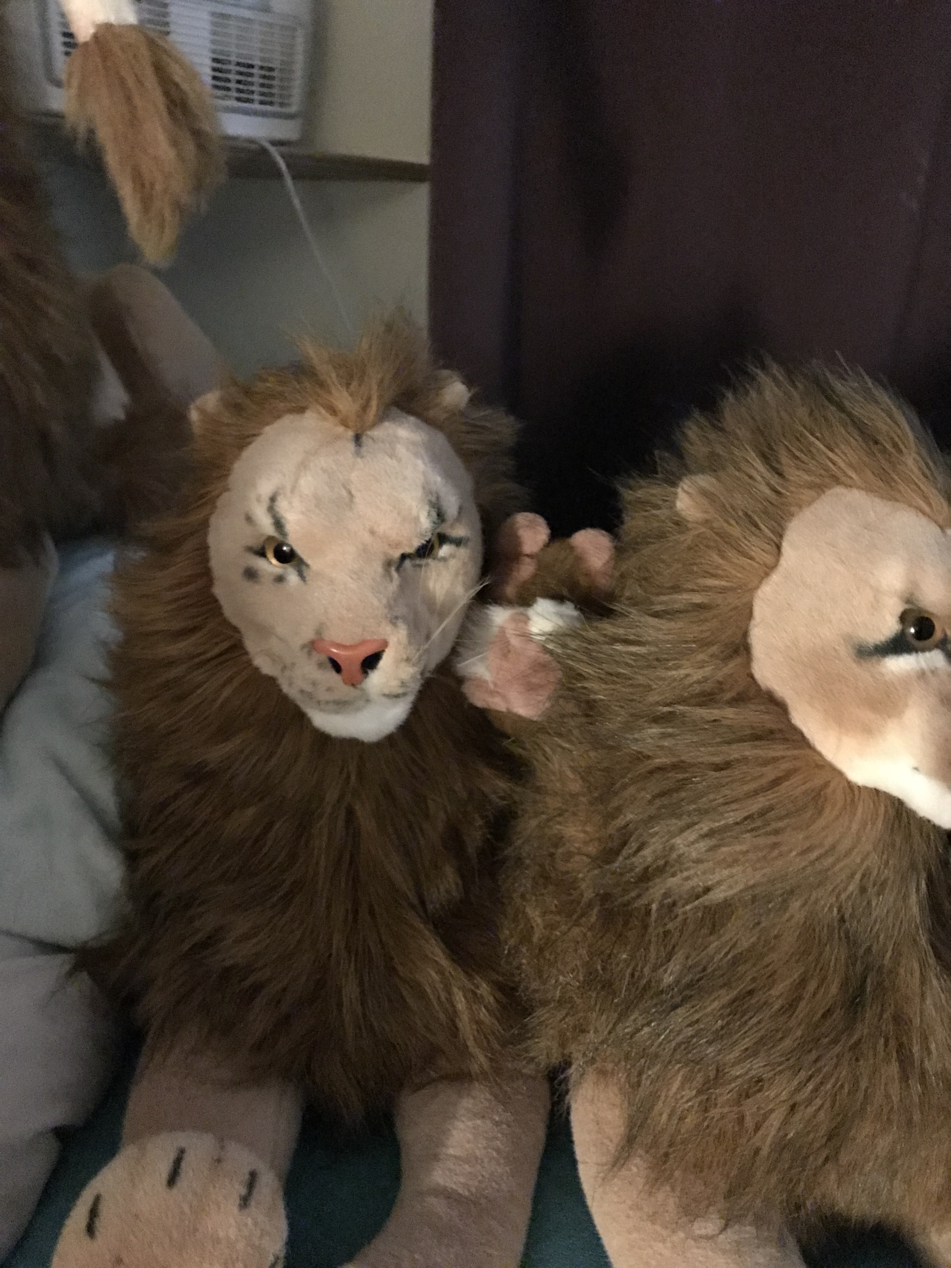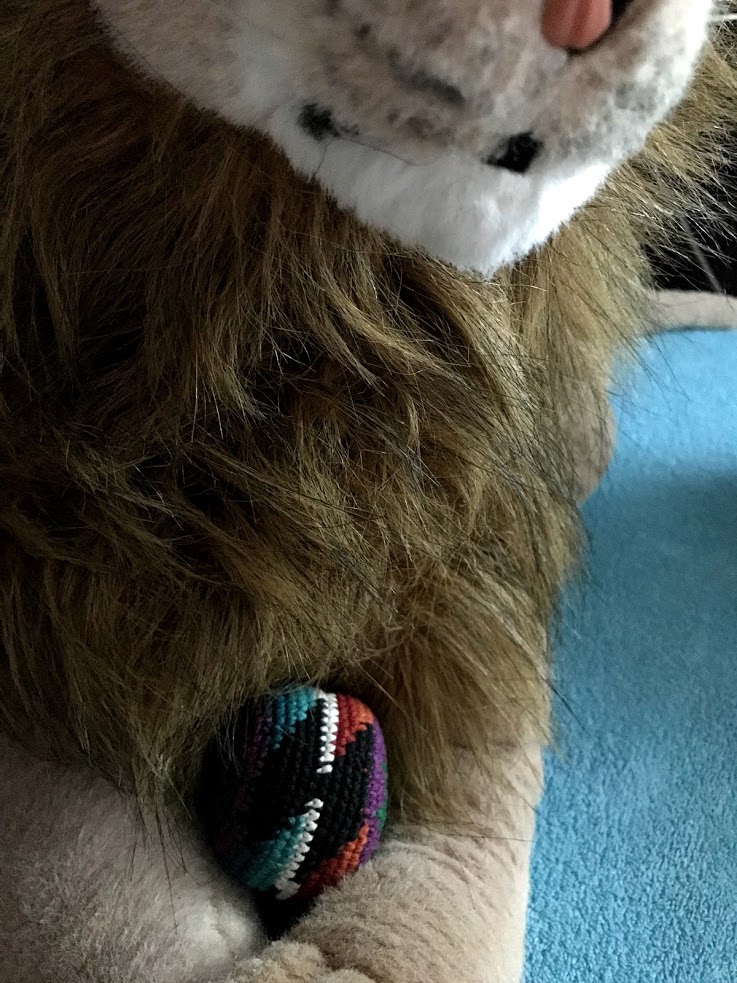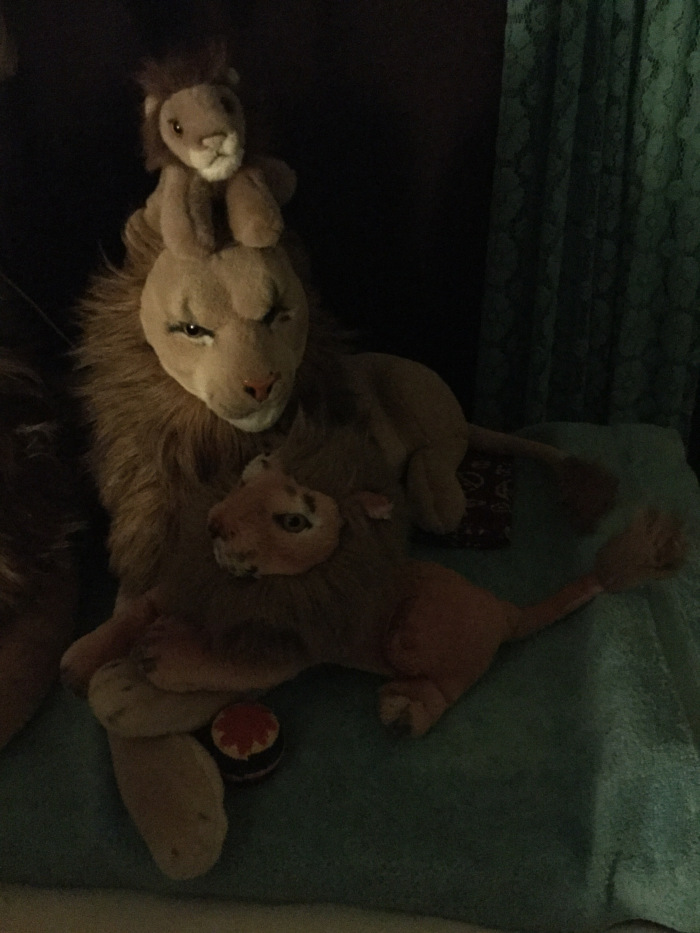 And time and time again, when I was at my wit’s end, the flame beneath my earthly despair and loneliness began to flicker, encouragements came, and still come: “Hang in there!” Let me give a few examples. I’m completely in love with the new inner crew Rob Nanninga lion “Surprise” with his beautiful soft mane, his attentive and lightly ironic, heavenly eyes. I’m head over heels for all the inner crew Rob lions, and the infatuation strikes again and again. And last March, my mind made a beautiful connection: the lion had literally arrived like a ball, and another word for ball is “Orb.” That word is itself a skeptical wink because “orbs” in photos are often seen by paranormal believers as spirits or energies. Suddenly, the word Rob rolled over to Orb, and then I immediately had a new name tag made for Rob Surprise Lion. My mind then continues to play with the name of the new Rob lion: Surprise Orb, Supreme Orb, Sublime Orb, Superb Orb, Super Orb, Stunning Orb…