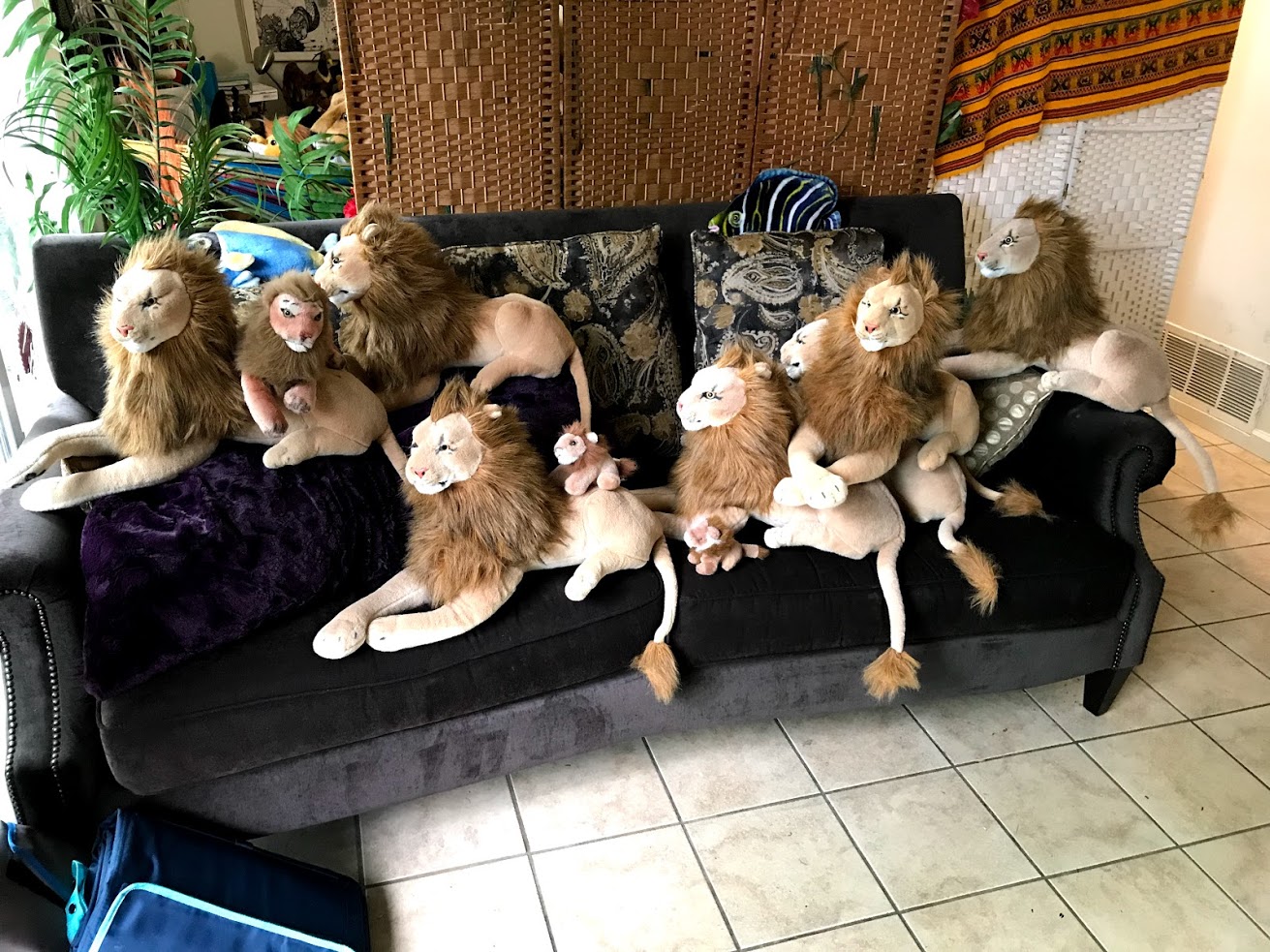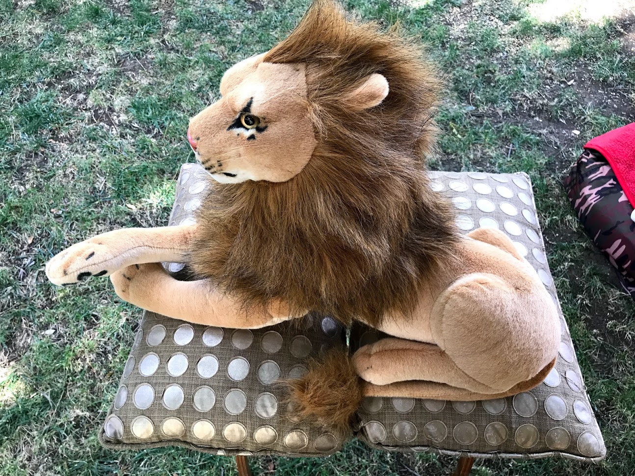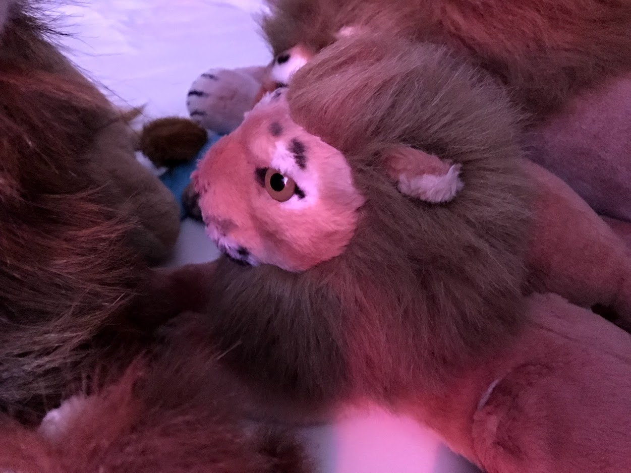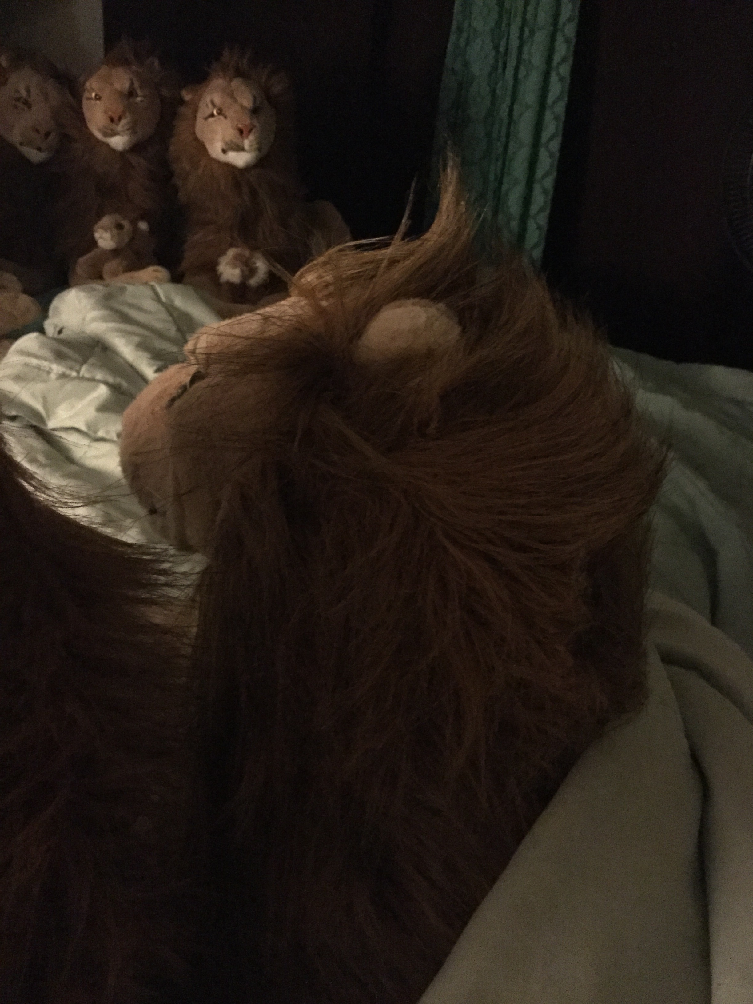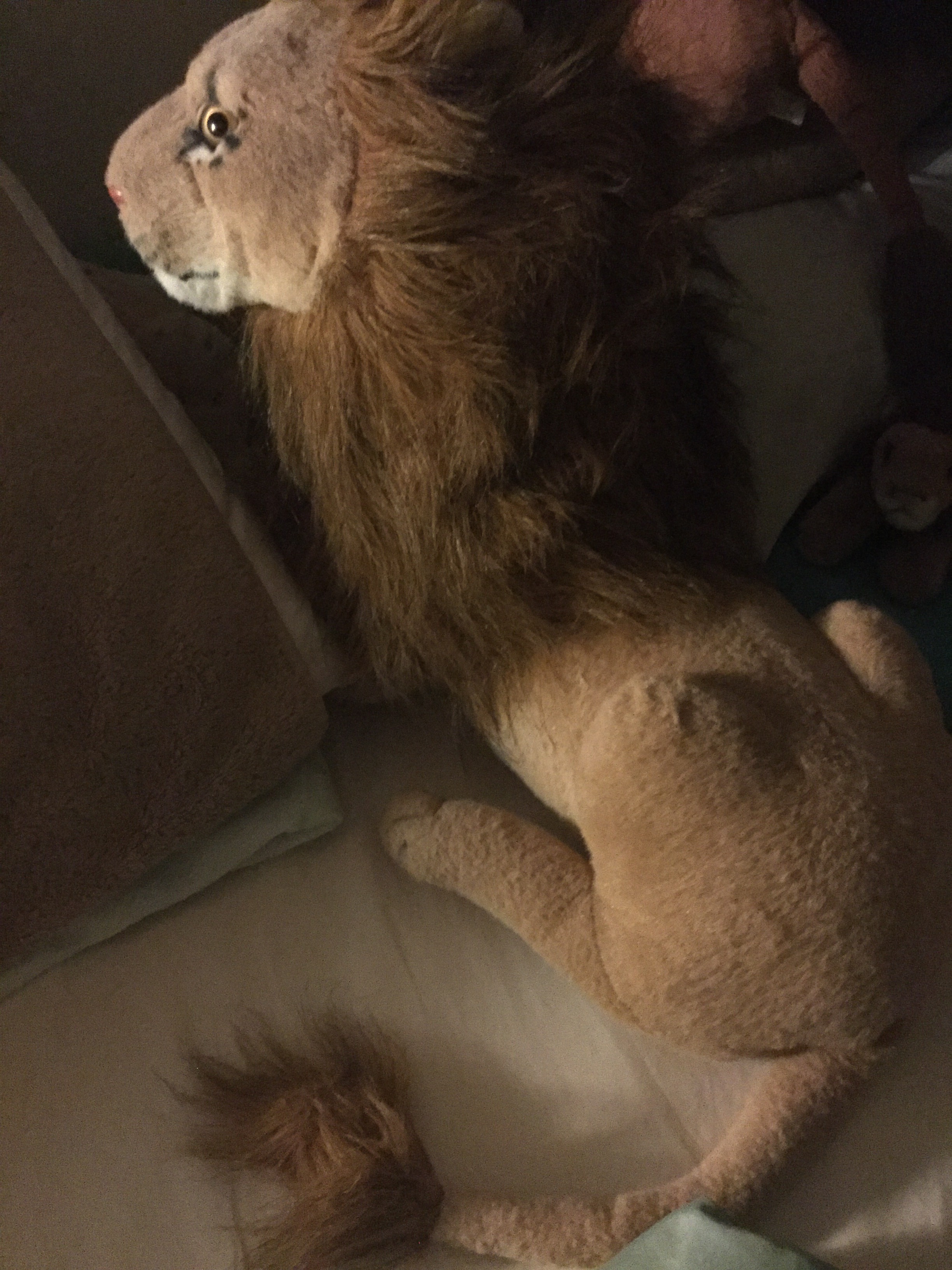 And time and time again, when I was at my wit’s end, the flame beneath my earthly despair and loneliness began to flicker, encouragements came, and still come: “Hang in there!” Let me give a few examples. I’m completely in love with the new inner crew Rob Nanninga lion “Surprise” with his beautiful soft mane, his attentive and lightly ironic, heavenly eyes. I’m head over heels for all the inner crew Rob lions, and the infatuation strikes again and again. And last March, my mind made a beautiful connection: the lion had literally arrived like a ball, and another word for ball is “Orb.” That word is itself a skeptical wink because “orbs” in photos are often seen by paranormal believers as spirits or energies. Suddenly, the word Rob rolled over to Orb, and then I immediately had a new name tag made for Rob Surprise Lion. My mind then continues to play with the name of the new Rob lion: Surprise Orb, Supreme Orb, Sublime Orb, Superb Orb, Super Orb, Stunning Orb…
