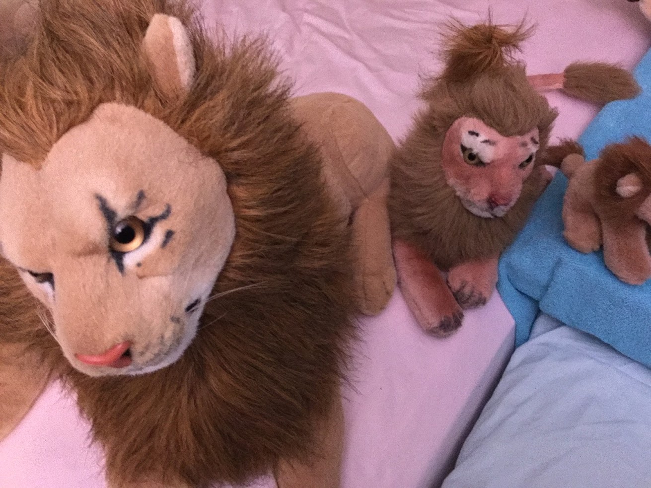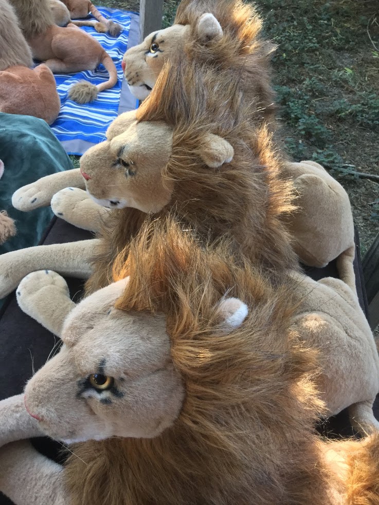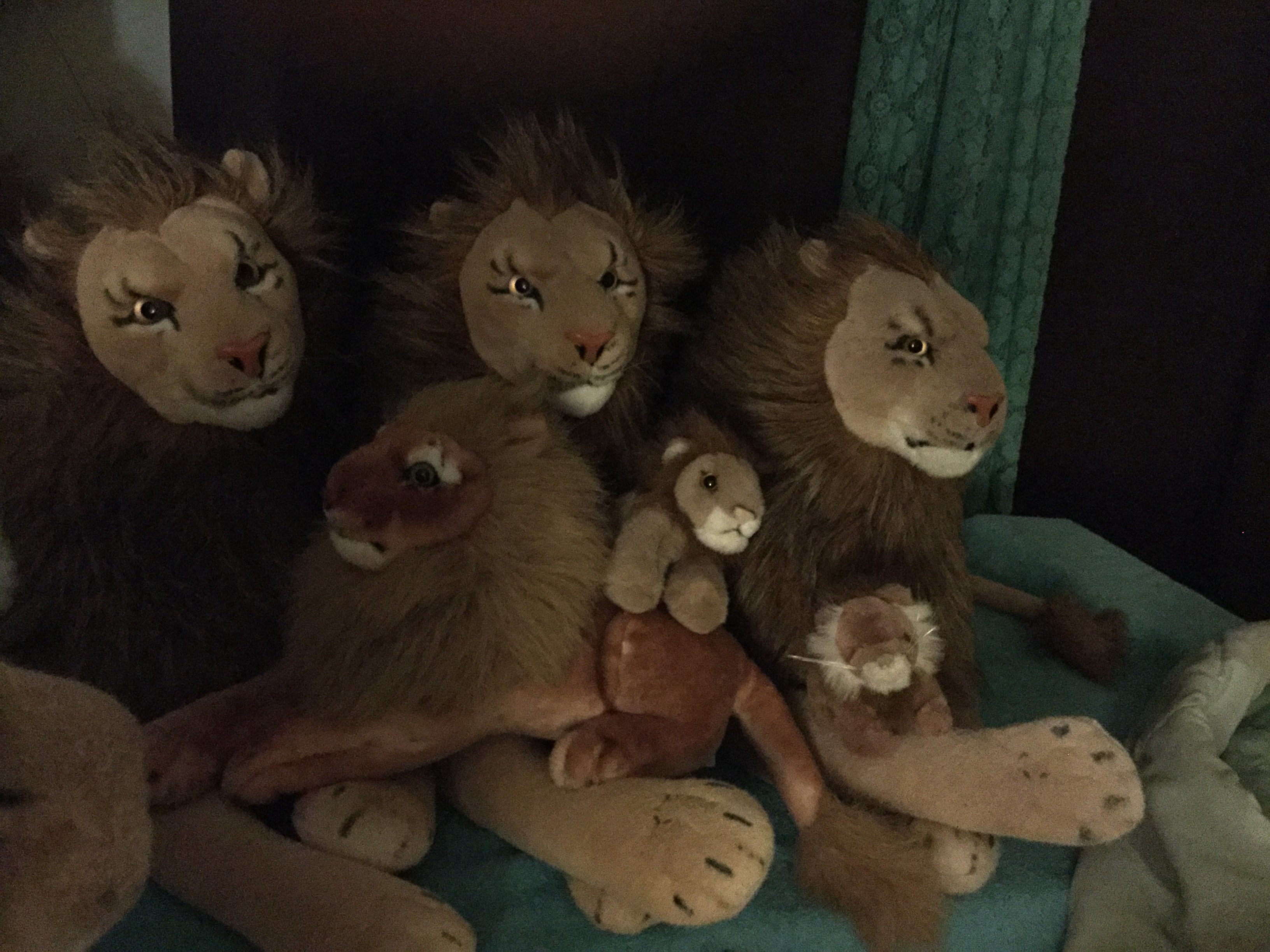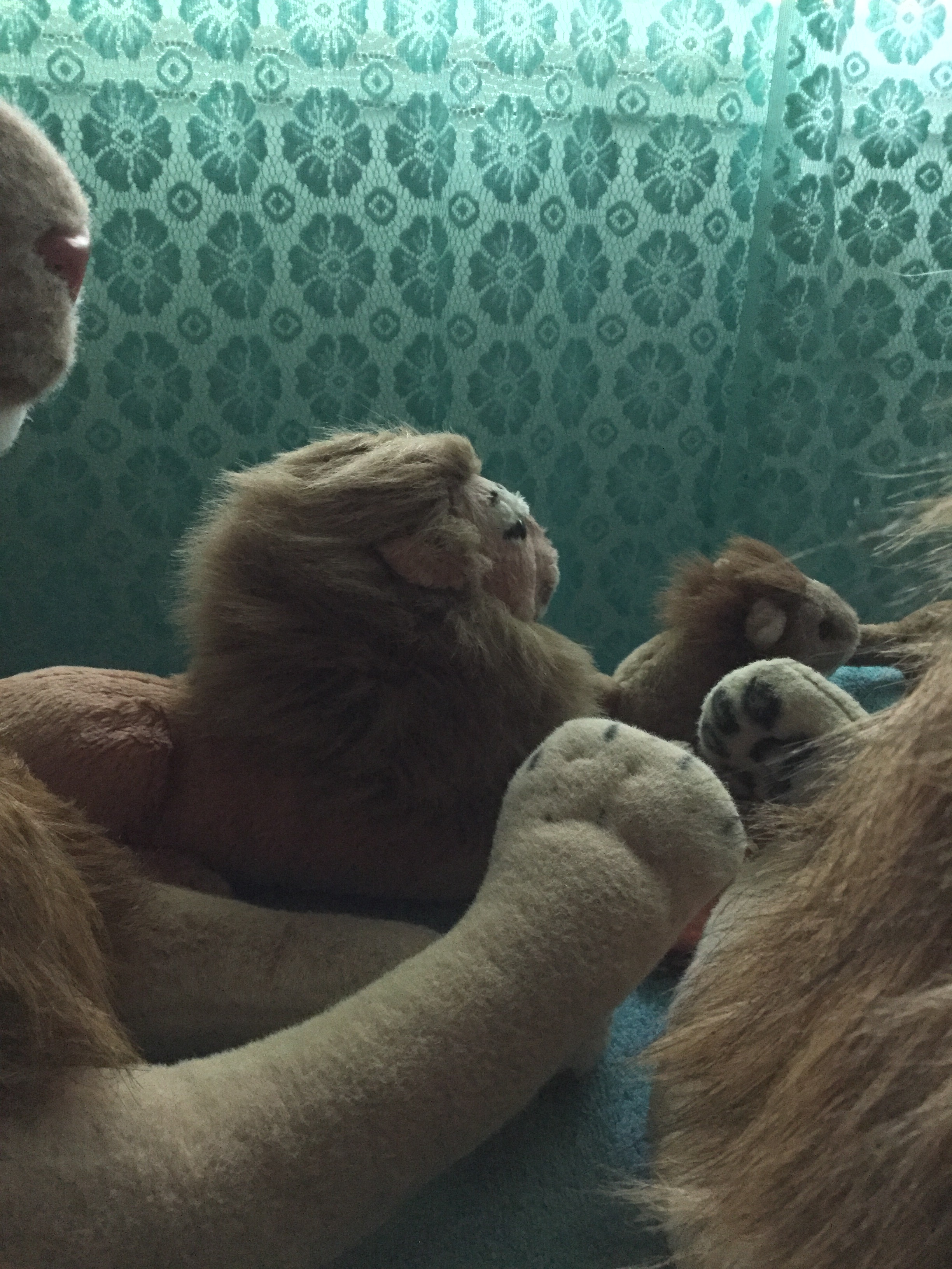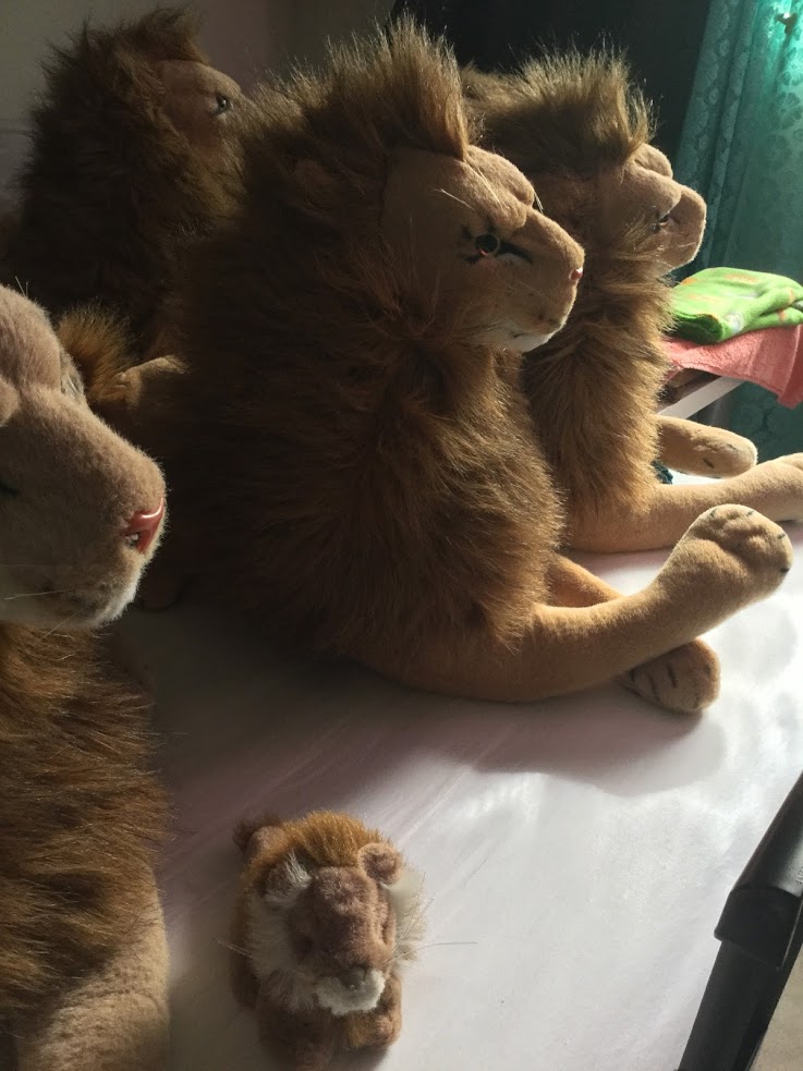 And time and time again, when I was at my wit’s end, the flame beneath my earthly despair and loneliness began to flicker, encouragements came, and still come: “Hang in there!” Let me give a few examples. I’m completely in love with the new inner crew Rob Nanninga lion “Surprise” with his beautiful soft mane, his attentive and lightly ironic, heavenly eyes. I’m head over heels for all the inner crew Rob lions, and the infatuation strikes again and again. And last March, my mind made a beautiful connection: the lion had literally arrived like a ball, and another word for ball is “Orb.” That word is itself a skeptical wink because “orbs” in photos are often seen by paranormal believers as spirits or energies. Suddenly, the word Rob rolled over to Orb, and then I immediately had a new name tag made for Rob Surprise Lion. My mind then continues to play with the name of the new Rob lion: Surprise Orb, Supreme Orb, Sublime Orb, Superb Orb, Super Orb, Stunning Orb…