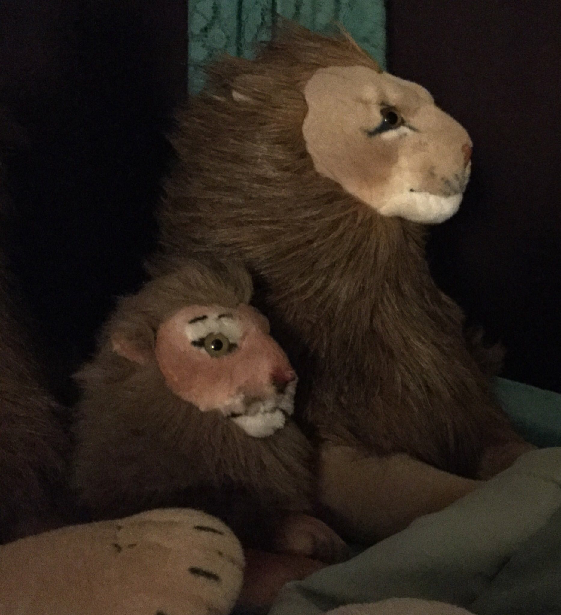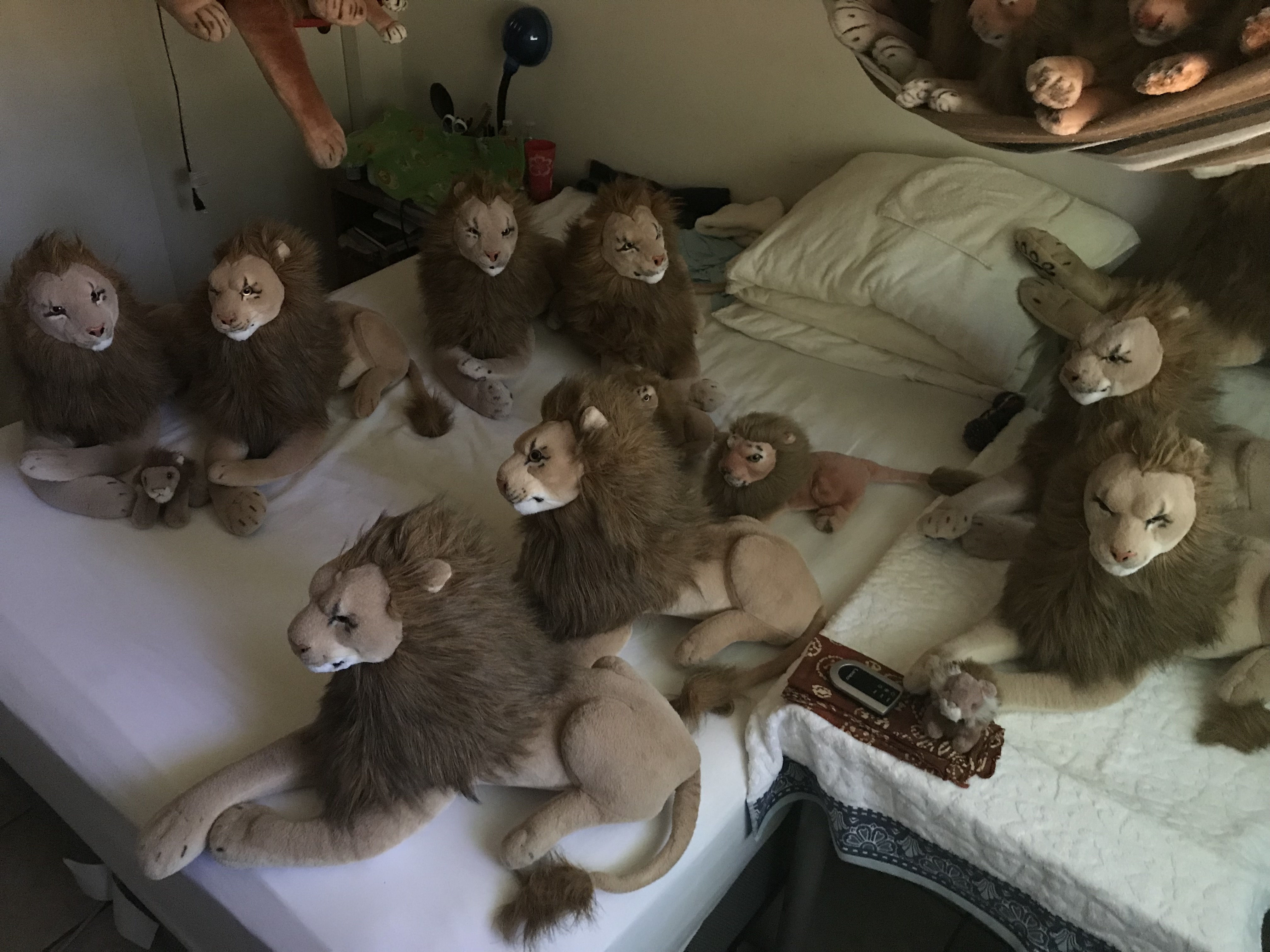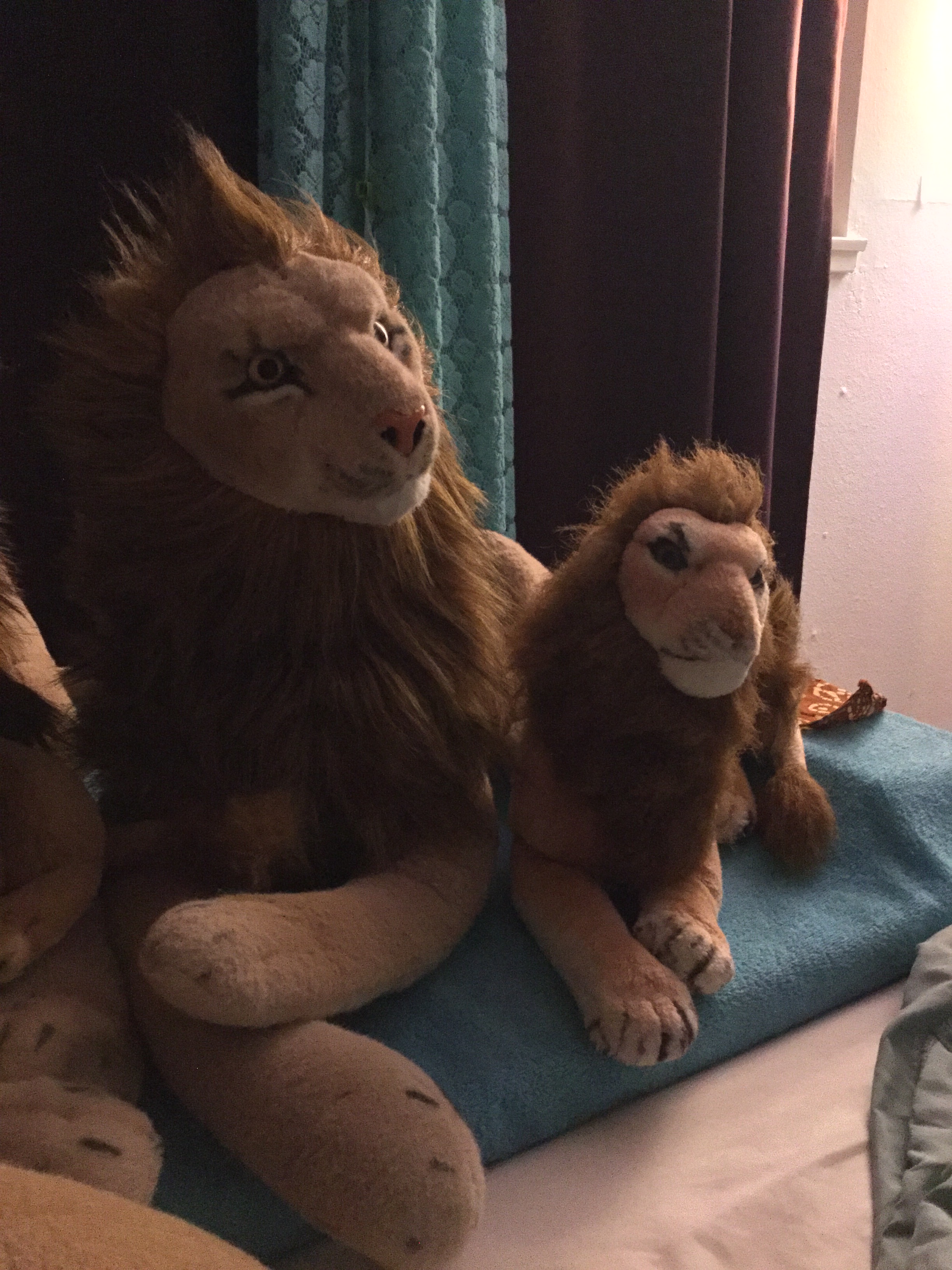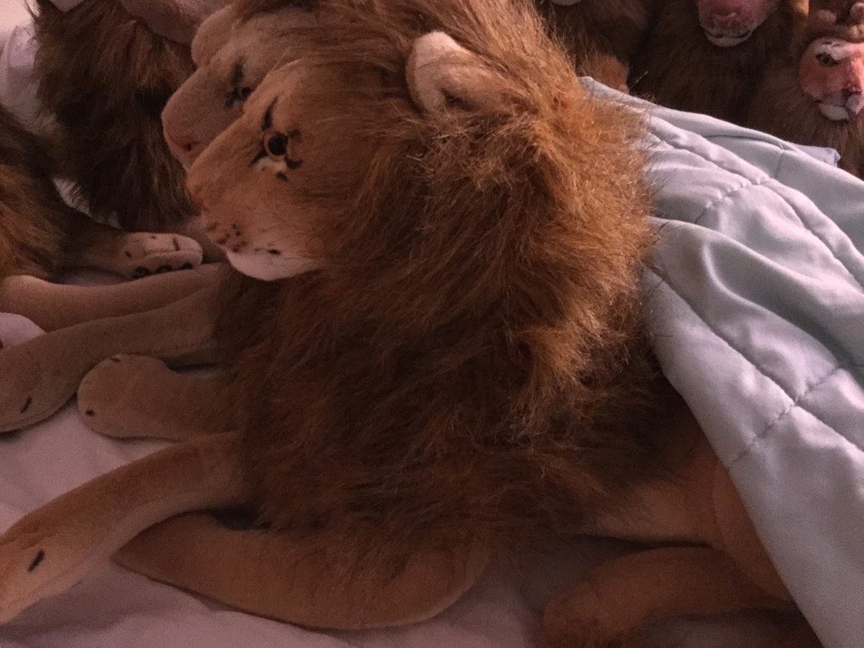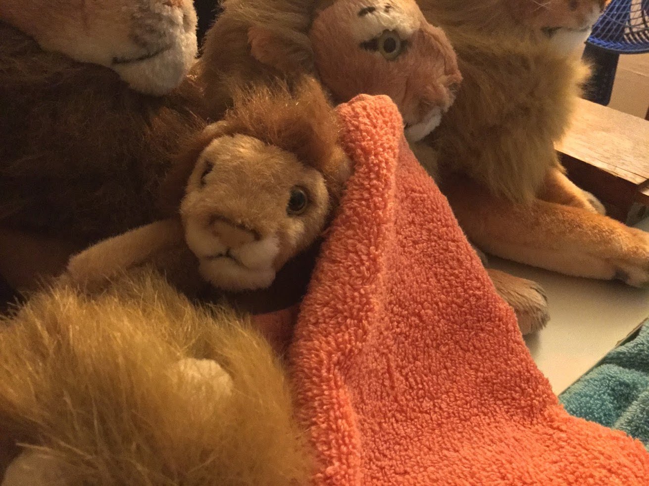 And time and time again, when I was at my wit’s end, the flame beneath my earthly despair and loneliness began to flicker, encouragements came, and still come: “Hang in there!” Let me give a few examples. I’m completely in love with the new inner crew Rob Nanninga lion “Surprise” with his beautiful soft mane, his attentive and lightly ironic, heavenly eyes. I’m head over heels for all the inner crew Rob lions, and the infatuation strikes again and again. And last March, my mind made a beautiful connection: the lion had literally arrived like a ball, and another word for ball is “Orb.” That word is itself a skeptical wink because “orbs” in photos are often seen by paranormal believers as spirits or energies. Suddenly, the word Rob rolled over to Orb, and then I immediately had a new name tag made for Rob Surprise Lion. My mind then continues to play with the name of the new Rob lion: Surprise Orb, Supreme Orb, Sublime Orb, Superb Orb, Super Orb, Stunning Orb…