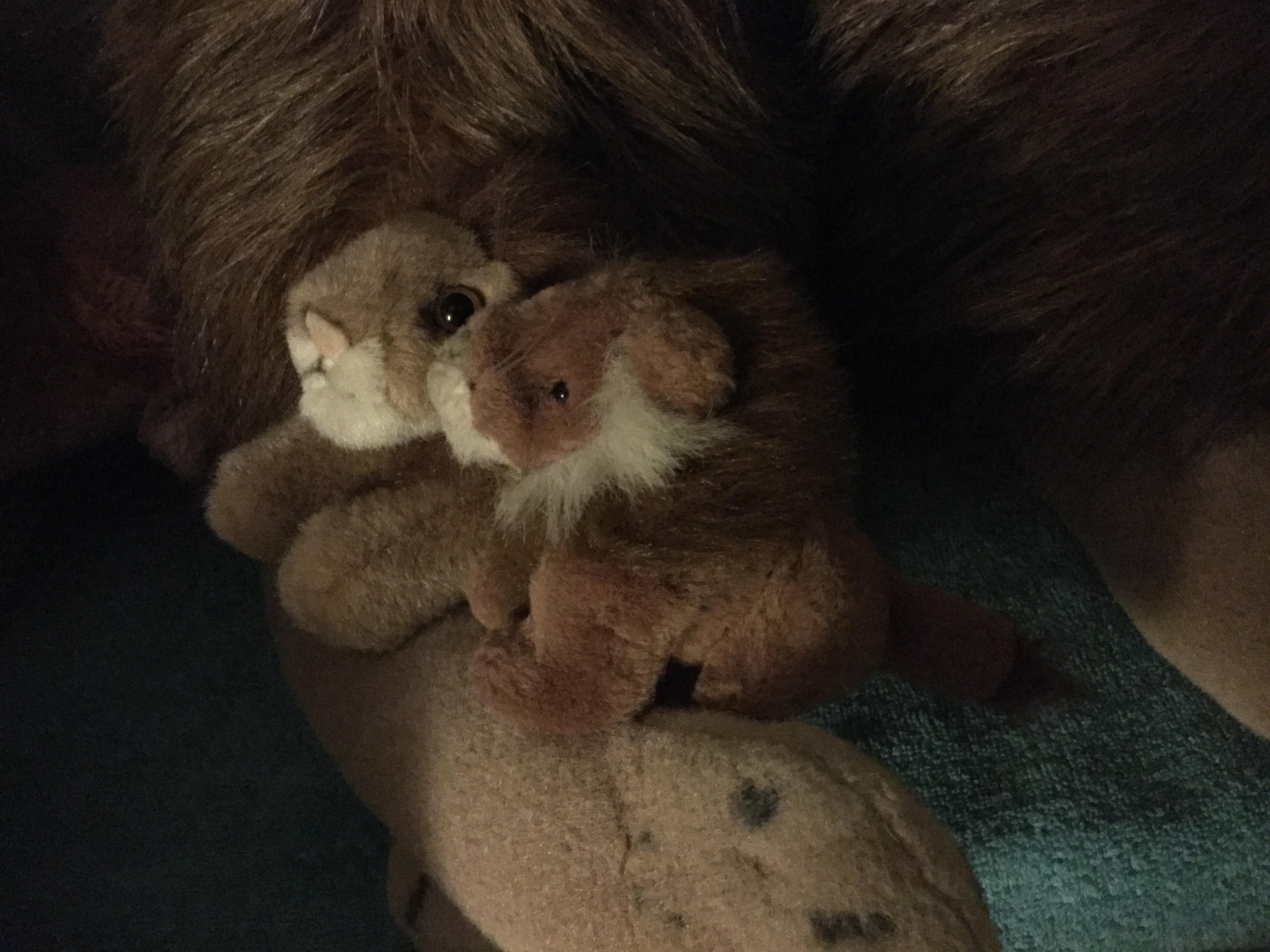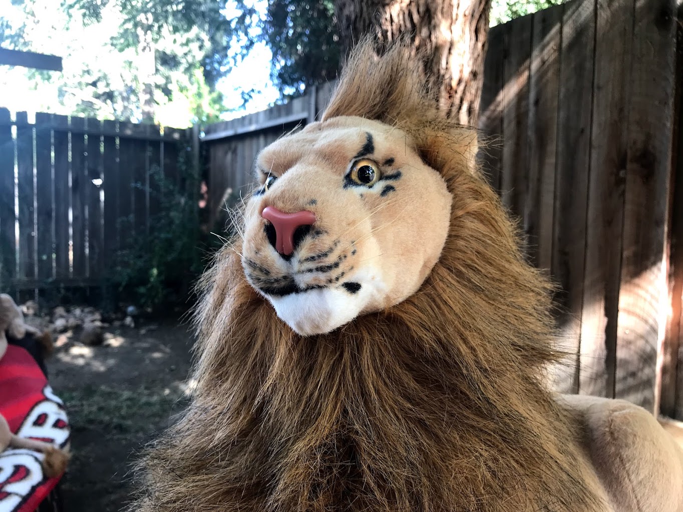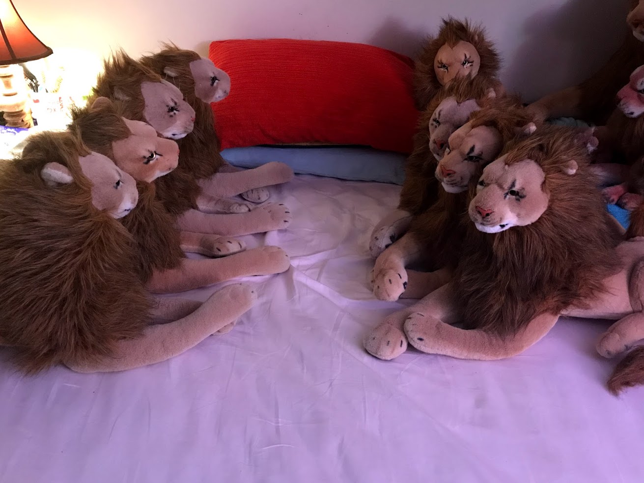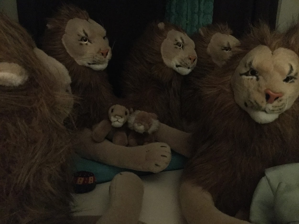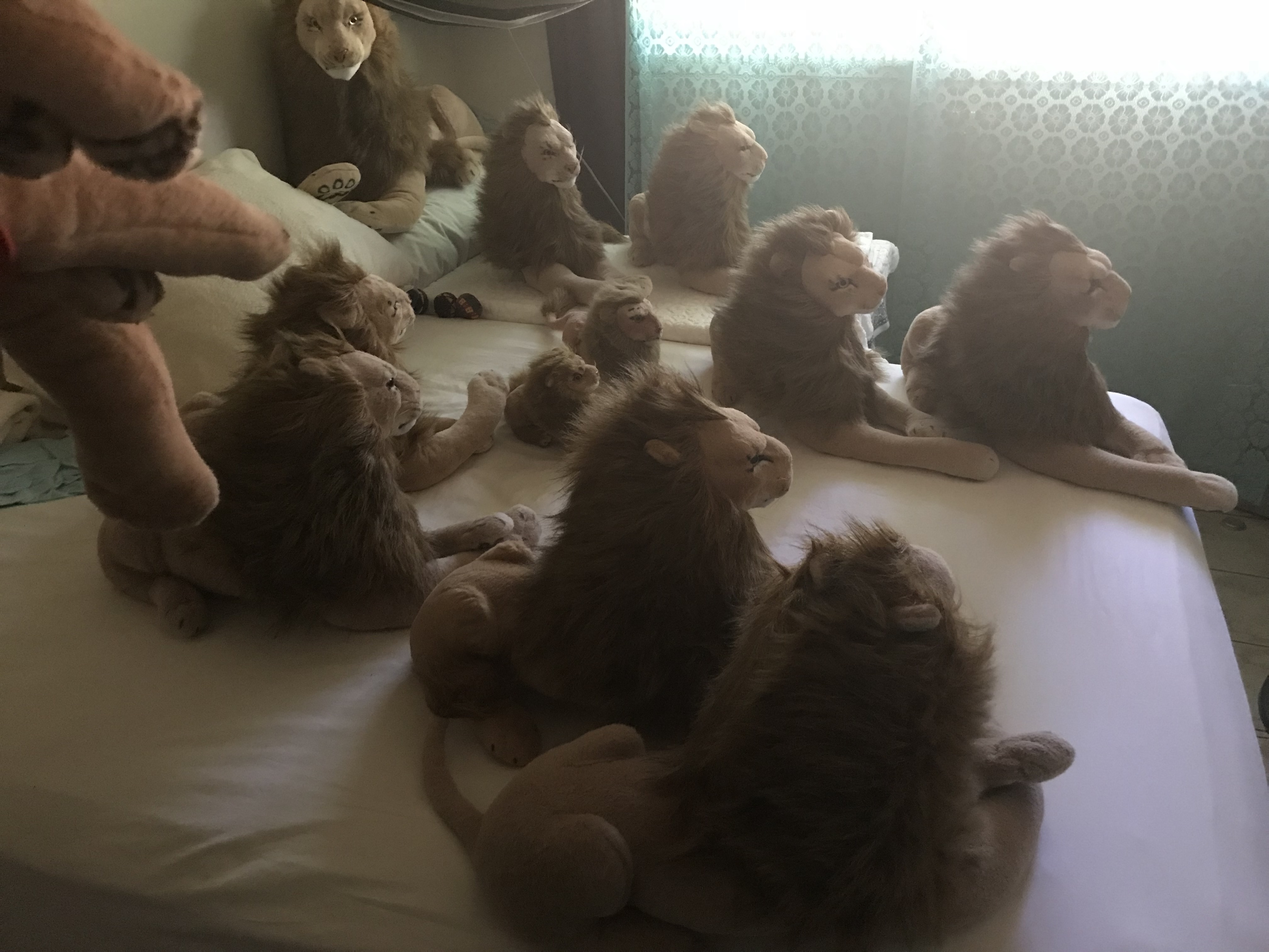 And time and time again, when I was at my wit’s end, the flame beneath my earthly despair and loneliness began to flicker, encouragements came, and still come: “Hang in there!” Let me give a few examples. I’m completely in love with the new inner crew Rob Nanninga lion “Surprise” with his beautiful soft mane, his attentive and lightly ironic, heavenly eyes. I’m head over heels for all the inner crew Rob lions, and the infatuation strikes again and again. And last March, my mind made a beautiful connection: the lion had literally arrived like a ball, and another word for ball is “Orb.” That word is itself a skeptical wink because “orbs” in photos are often seen by paranormal believers as spirits or energies. Suddenly, the word Rob rolled over to Orb, and then I immediately had a new name tag made for Rob Surprise Lion. My mind then continues to play with the name of the new Rob lion: Surprise Orb, Supreme Orb, Sublime Orb, Superb Orb, Super Orb, Stunning Orb…