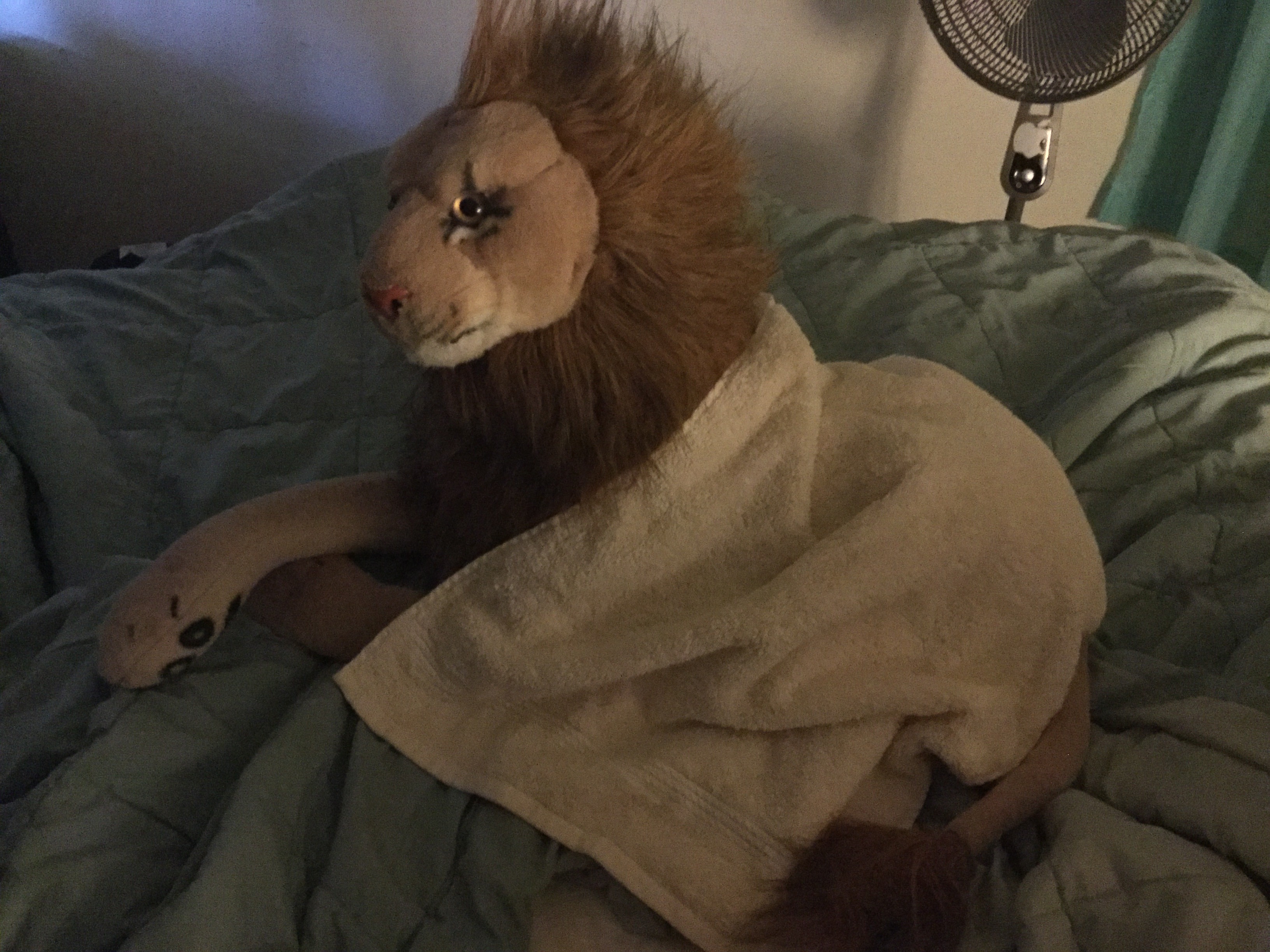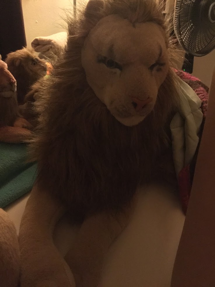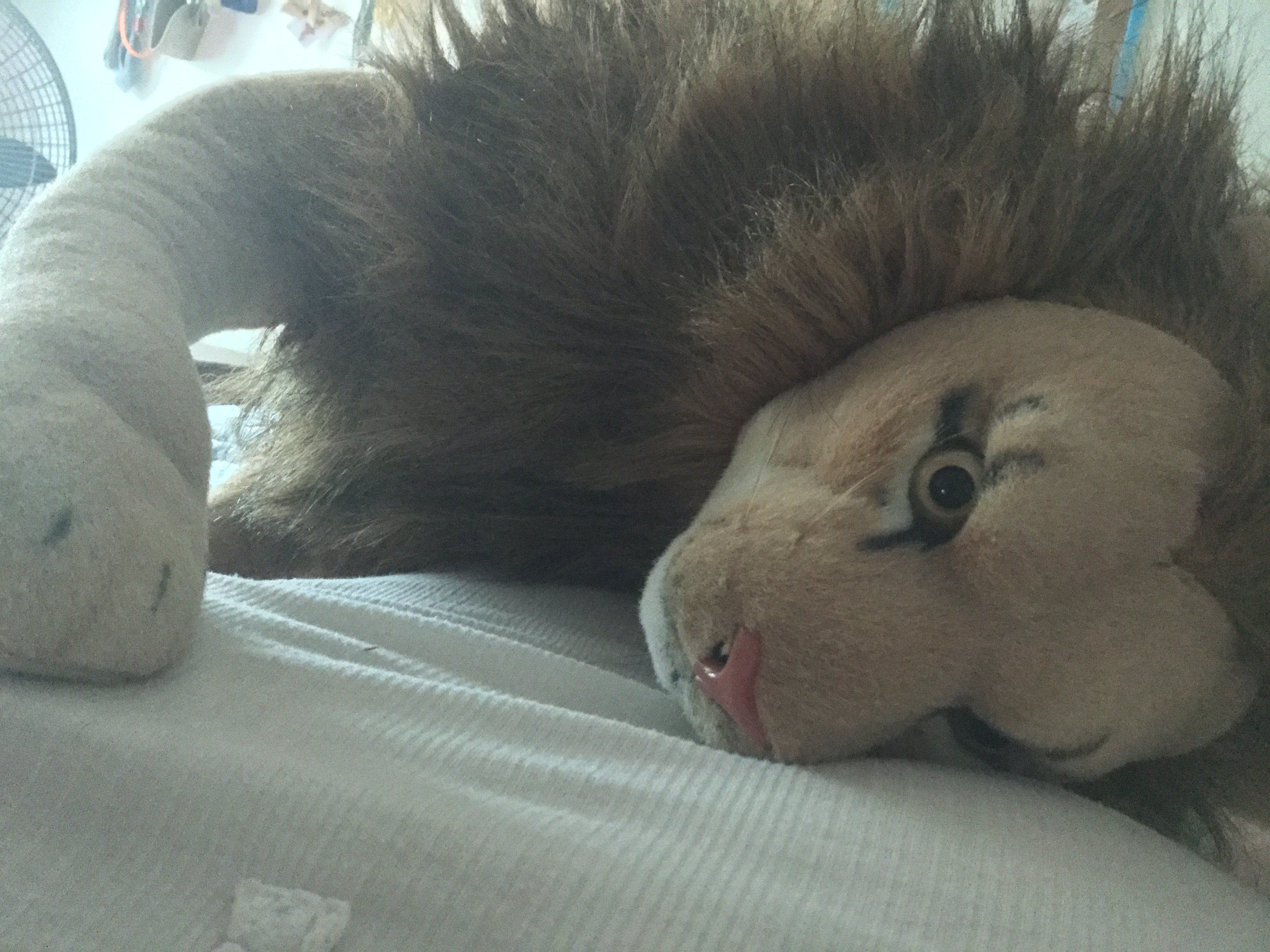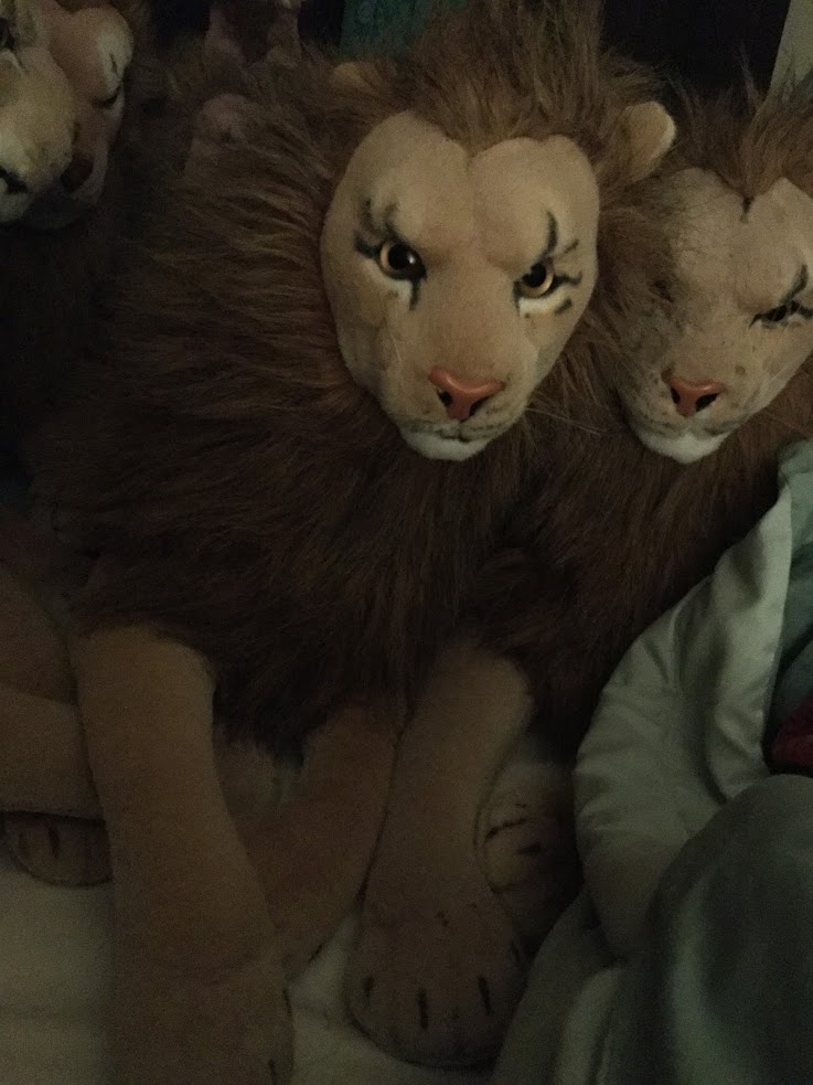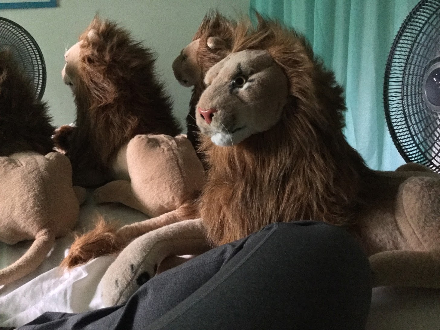 And time and time again, when I was at my wit’s end, the flame beneath my earthly despair and loneliness began to flicker, encouragements came, and still come: “Hang in there!” Let me give a few examples. I’m completely in love with the new inner crew Rob Nanninga lion “Surprise” with his beautiful soft mane, his attentive and lightly ironic, heavenly eyes. I’m head over heels for all the inner crew Rob lions, and the infatuation strikes again and again. And last March, my mind made a beautiful connection: the lion had literally arrived like a ball, and another word for ball is “Orb.” That word is itself a skeptical wink because “orbs” in photos are often seen by paranormal believers as spirits or energies. Suddenly, the word Rob rolled over to Orb, and then I immediately had a new name tag made for Rob Surprise Lion. My mind then continues to play with the name of the new Rob lion: Surprise Orb, Supreme Orb, Sublime Orb, Superb Orb, Super Orb, Stunning Orb…